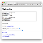 MML 란 Music Macro Language의 약자로 음악을 표현하기위한 DSL이 됩니다. 명령이 간단하고 C~B이 도레미파솔라시도가 붙어 있습니다. 그 밖에도 다수 준비되어있는 명령을 사용하여 음악을 연주합니다. 일반적으로 MML에서 만든 파일을 컴파일러를 사용하여 음악 파일로 변환하는 것입니다만, MML-editor를 사용하면 그 자리에서 음악을 재생할 수 있습니다. MML-editor 사용 메인 화면입니다. 텍스트 영역에 MML을 설명합니다 MML 형식과 템플릿이 준비되어 있으며, 옥타브를 변환 할 수 있습니다. 컴파일러를 사용하지 않기 때문에 블로그 등 코드를 공유하거나 Web 서비스에 통합 들어달라고 할 수도있을 것입니다. MML-editor는 HTML5 / JavaScript로 만든 오픈 ..