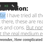 블로그 시스템으로 Medium이 인기입니다. 심플한 UI로 글을 쓰는 목적에 적합합니다. 특히 편집기가 잘되어 있고 각 섹션에 동영상이나 사진을 삽입하거나 문장을 장식 할 때 표시되는 도구 모음도 좋은 느낌입니다. 그런 Medium 편집기를 흉내 낸 것이 Dante입니다. 자신의 서비스에 Medium 바람 에디트 기능을 이용하고 싶은 분은 꼭 사용해보세요. Dante 사용법 문장을 선택하면 툴팁에 장식 기능이 나옵니다. 링크는 플로팅으로 대상 URL을 알 수 있습니다. 링크를 삽입하는 곳. 이미지의 캡션을 입력합니다. 사진, 동영상 포함 된 URL을 지정할 수 있습니다. 실제로 조작 Dante는 고정 툴바가있는 것은 아니기 때문에 장문을 쓰고있을 때에는 사용하기 쉬운 것입니다. 또한 동영상이나 이미지, ..